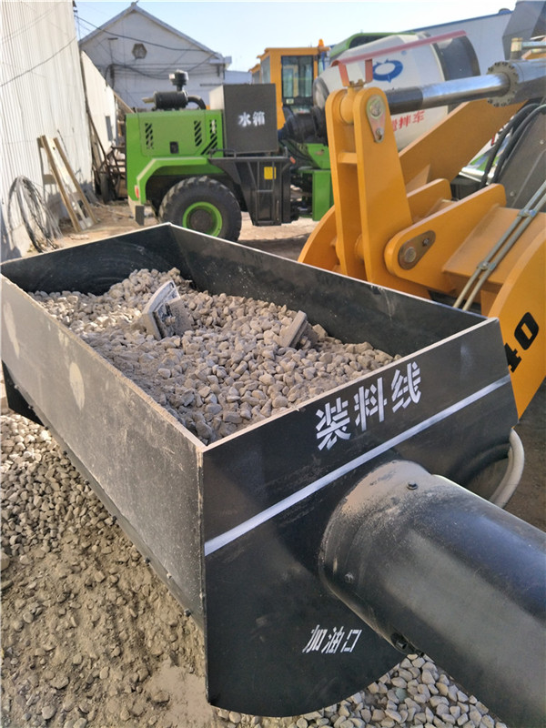 1.一种是用到装载机拆除铲斗组件,安装铲斗式搅拌缸,其支持系统是装载机铲斗式混凝土搅拌机,它自身实现装载,混合,转移和卸载的功能。